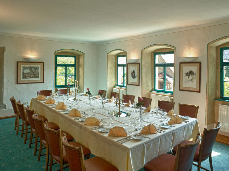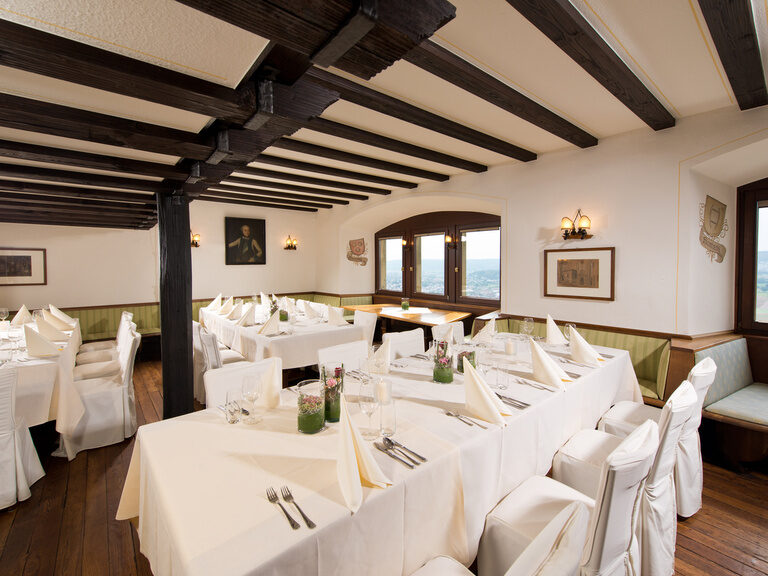 The atmospheric Götzensaal (for up to 130 persons), the historic Götzenstube (for up to 55 persons) and the Jagdzimmer (for up to 20 persons) with their very special charm offer a noble setting for different festive occasions.